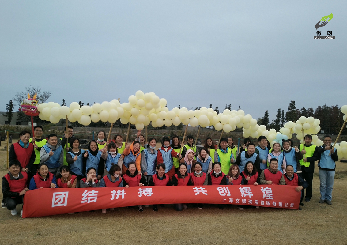 2020年11月,文獅珠寶的伙伴們在長興島開展了以“團結拼搏,共創輝煌”為主題的團建活動,環游世界球,移動高爾夫,卡牌風云各種小游戲齊上陣,用五彩的氣球慢慢綁在一起,組建成一條巨龍,畫龍點睛,舞龍逐珠。