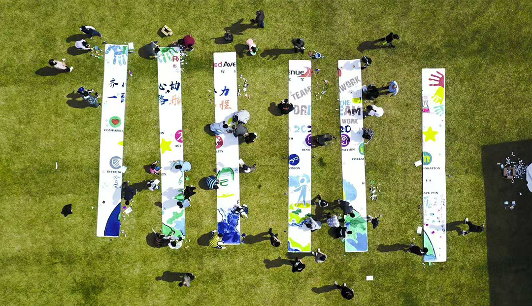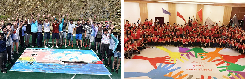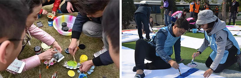 通過團隊共同努力完成一幅具有企業文化代表意義的畫,